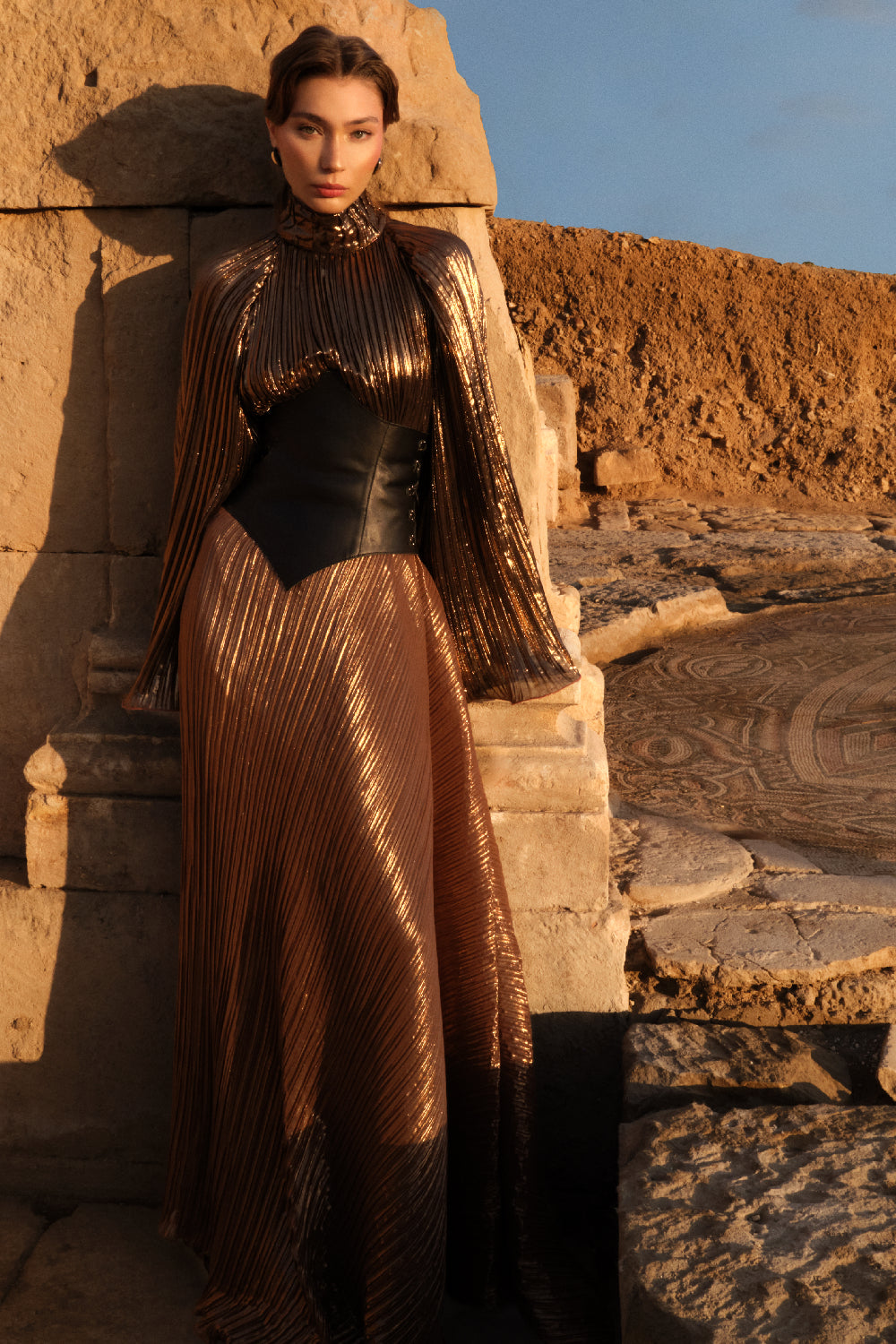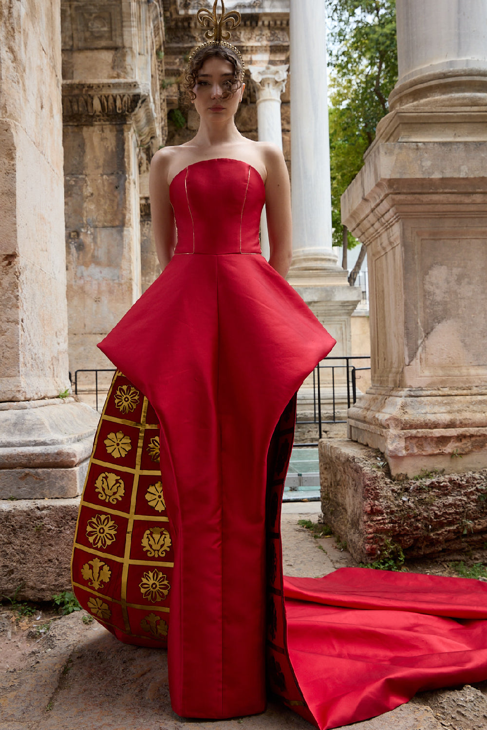 Gilded Symphony is a celebration of light, movement, and timeless grandeur. Set against the historic backdrop of Hadrian’s Gate, the collection draws inspiration from classical architecture and the harmony of ornate detail. Designed for moments that transcend time, Gilded Symphony embodies the spirit of couture — where heritage, artistry, and contemporary femininity unite.